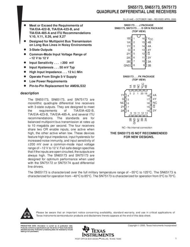 Quad Receiver RS-422/RS-423/RS-485 16-Pin CDIP
