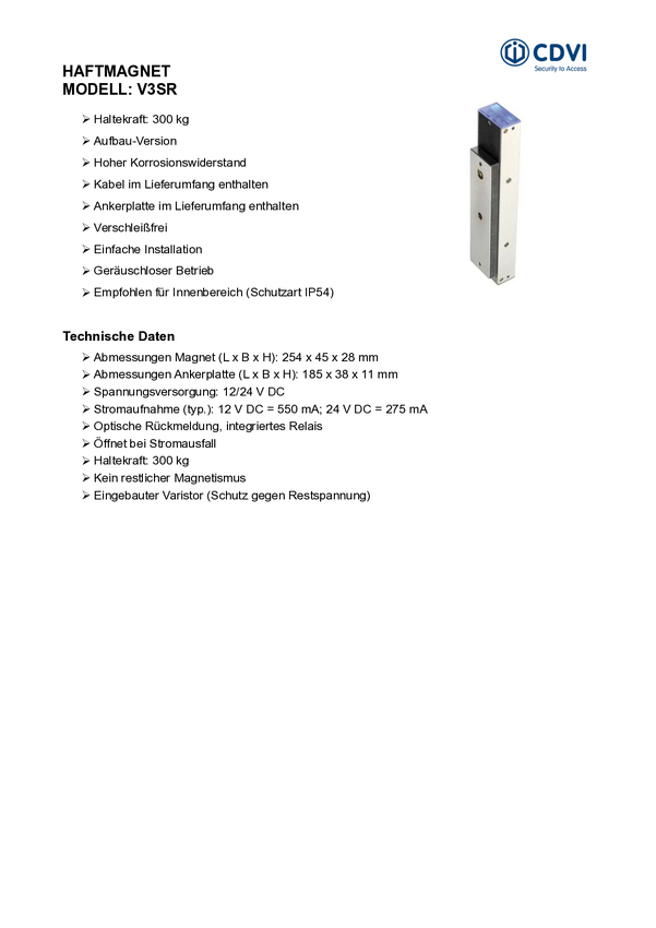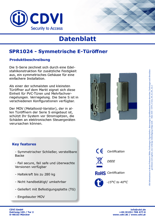 Elektryczny zamek do drzwi CDVI Security SPR1024 F0502000049