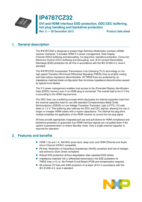 DVI and HDMI interface ESD and overcurrent protection, DDC/CEC buffering, hot plug detect and backdrive protection