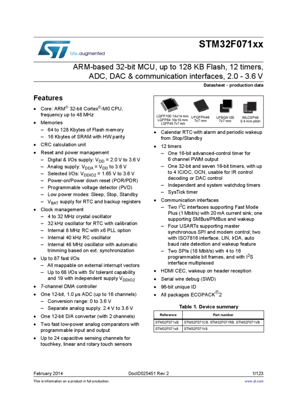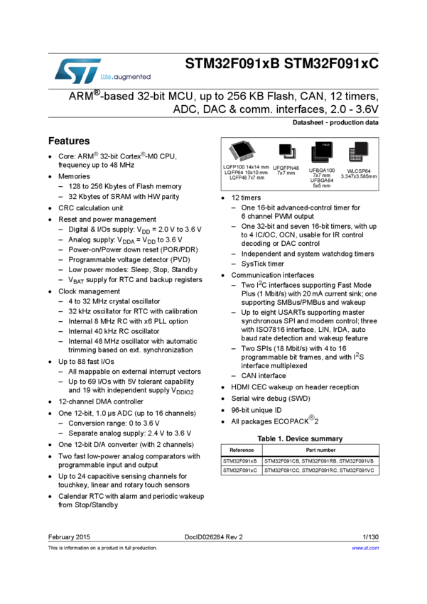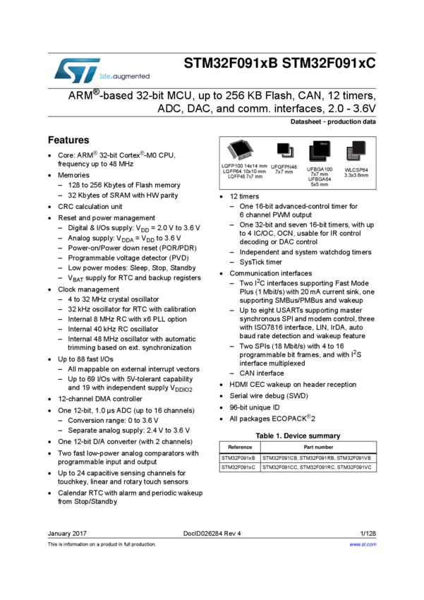 Entry-level ARM Cortex-M0 MCU with 128 Kbytes Flash, 48 MHz CPU, USB, CAN and CEC functions