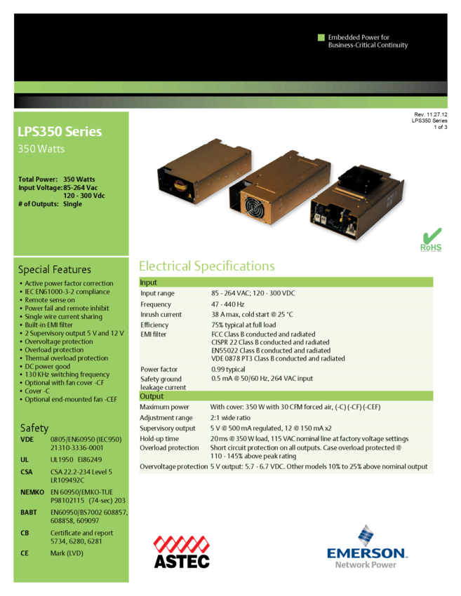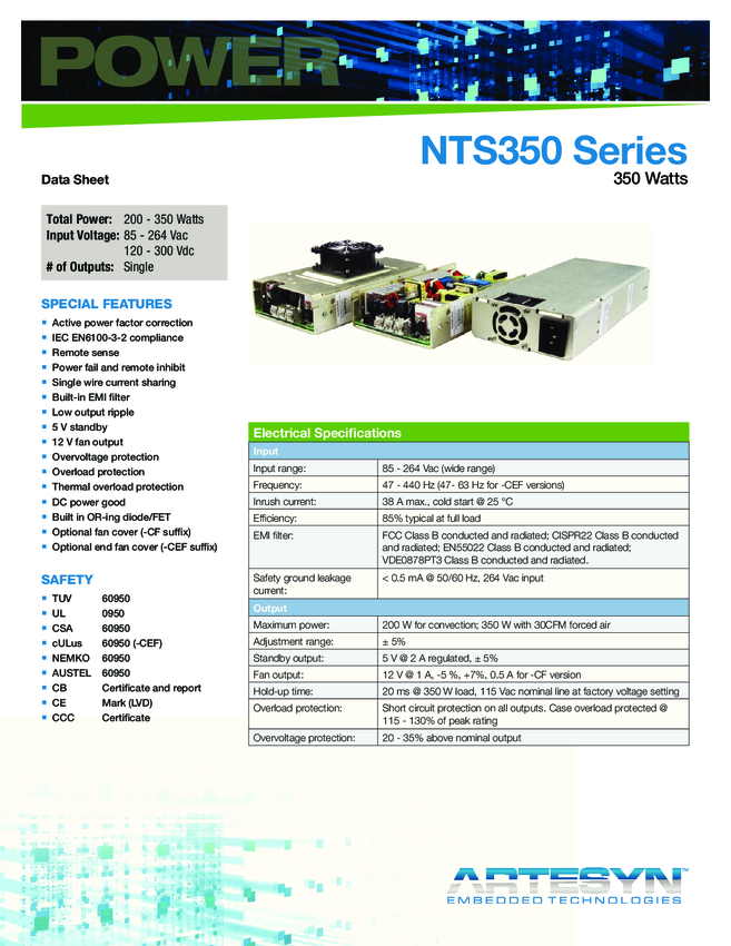 AC/DC Power Supply Single-OUT 12V 29.2A 350W 15-Pin