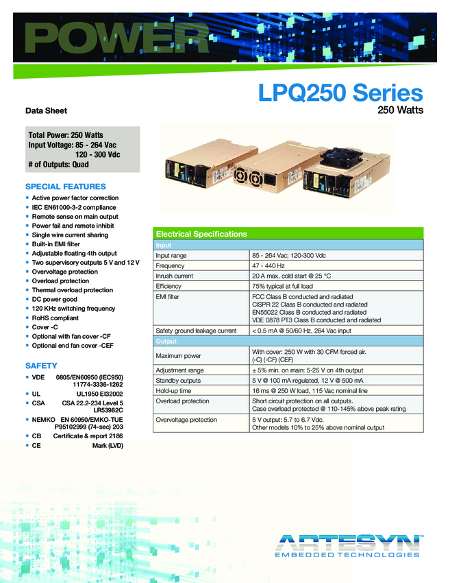 AC/DC Power Supply Single-OUT 24V 10.4A 250W 17-Pin
