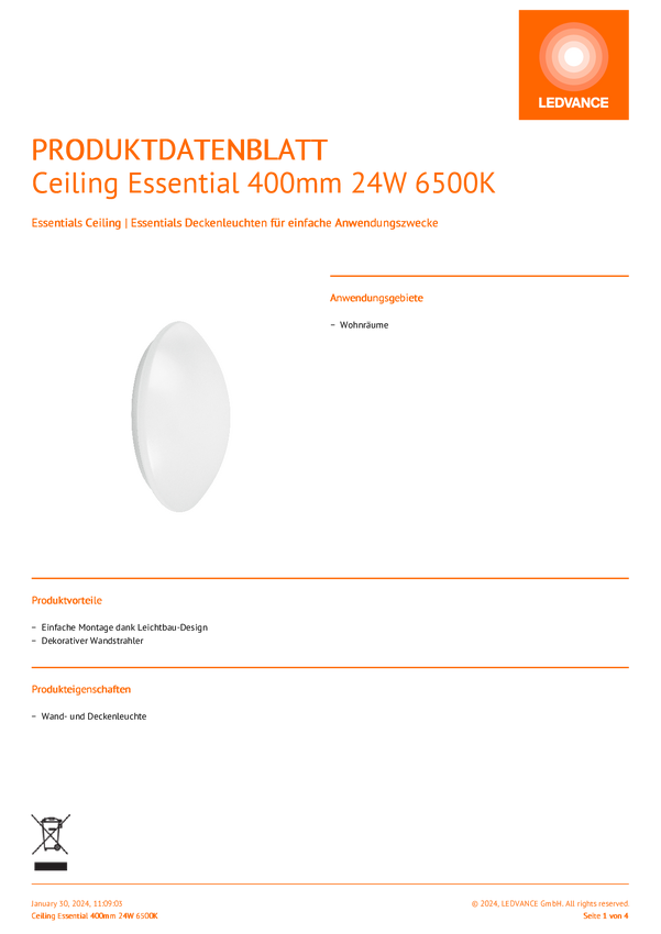 Lampa sufitowa LED LEDVANCE Ceiling Essential 4099854003158 24 W biały