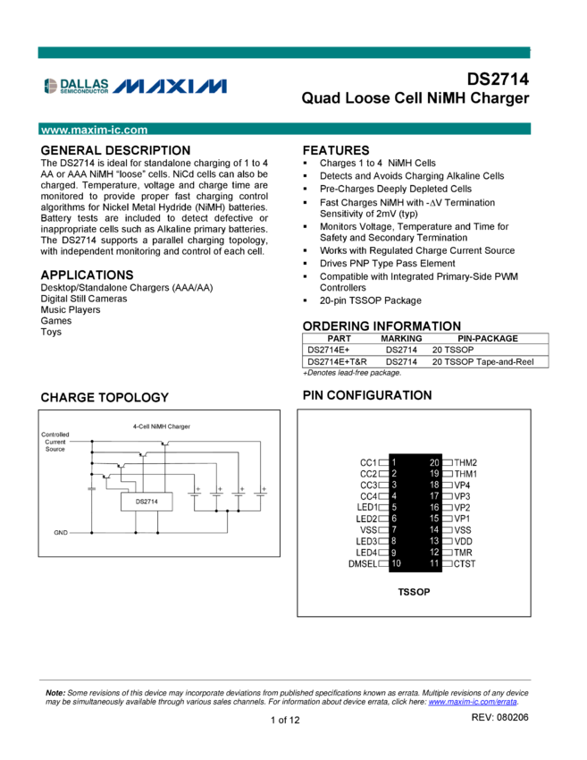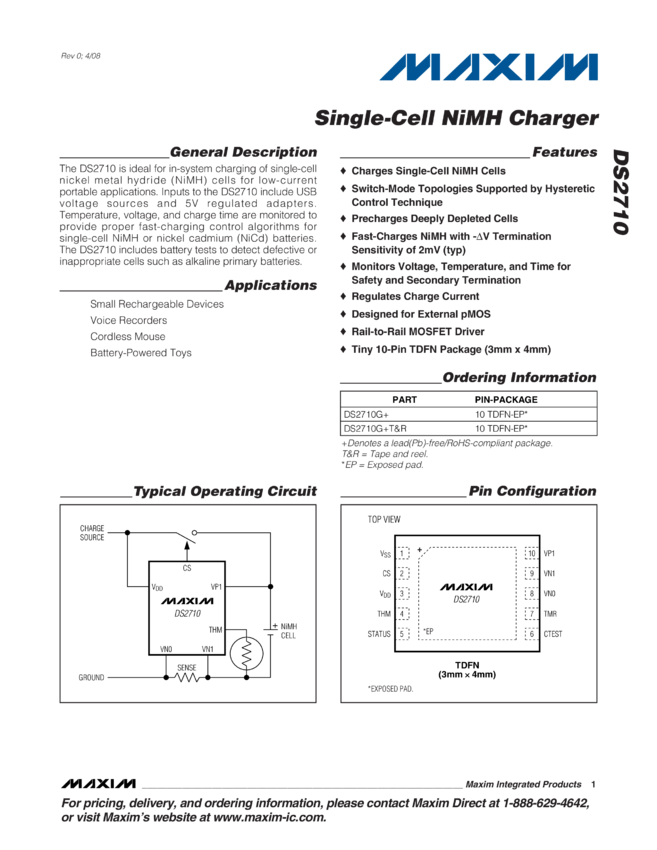 DS2711, DS2712 Loose-Cell NiMH Chargers