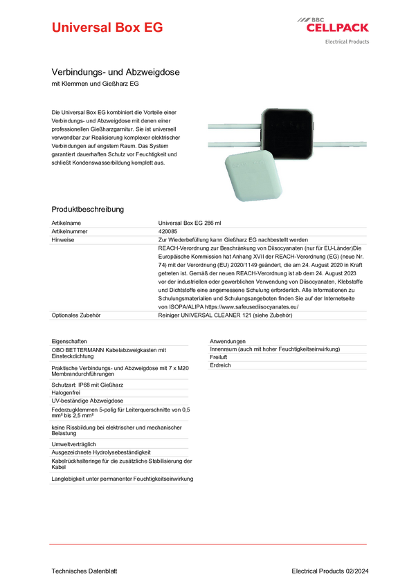 Puszka instalacyjna CellPack Universal Box/OBO/T60/WAGO/CG 428123, 114 mm x 114 mm x 57 mm , 1 szt.