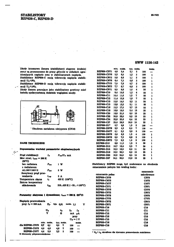 BZP620C4V3 Dioda Zenera 12.5W 4.3V