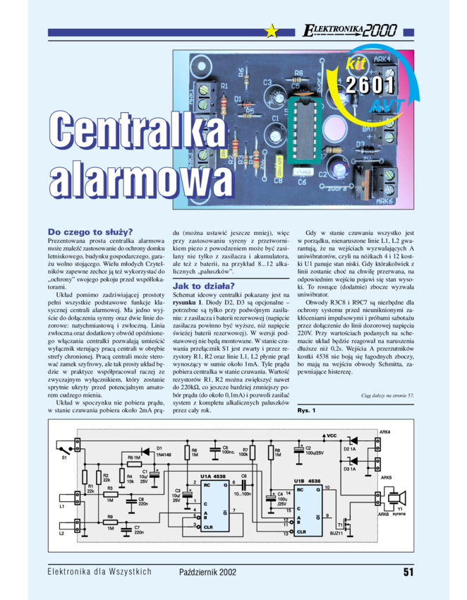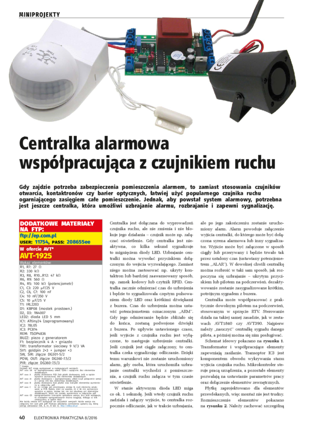 AVT1925 Centralka alarmowa współpracująca z czujnikiem ruchu