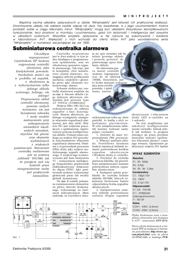 AVT1272 A+ Subminiaturowa centralka alarmowa - płytka drukowana i zaprogramowany układ