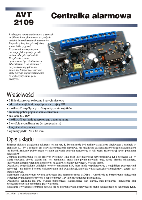 AVT2109 Centralka alarmowa