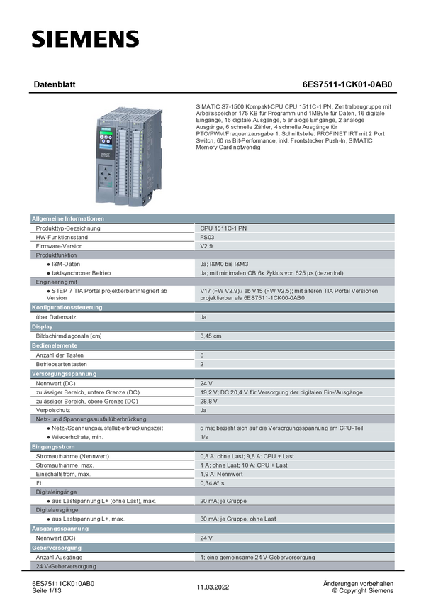 6ES75111CK010AB0