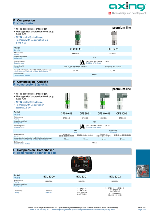 Wtyk kompresyjny F, kątowy, Quickfix Średnica kabla: 4.9 mm
