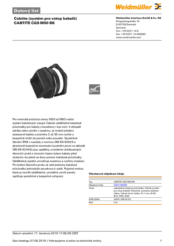 Weidmüller 2584130000 Dławnica kablowa CABTITE CGS M50 BK, M50, 10 szt.