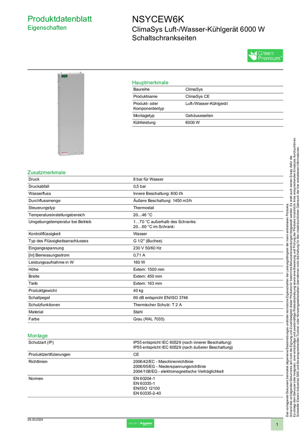 Schneider Electric NSYCEW1K8 Jednostka chłodząca powietrze/woda