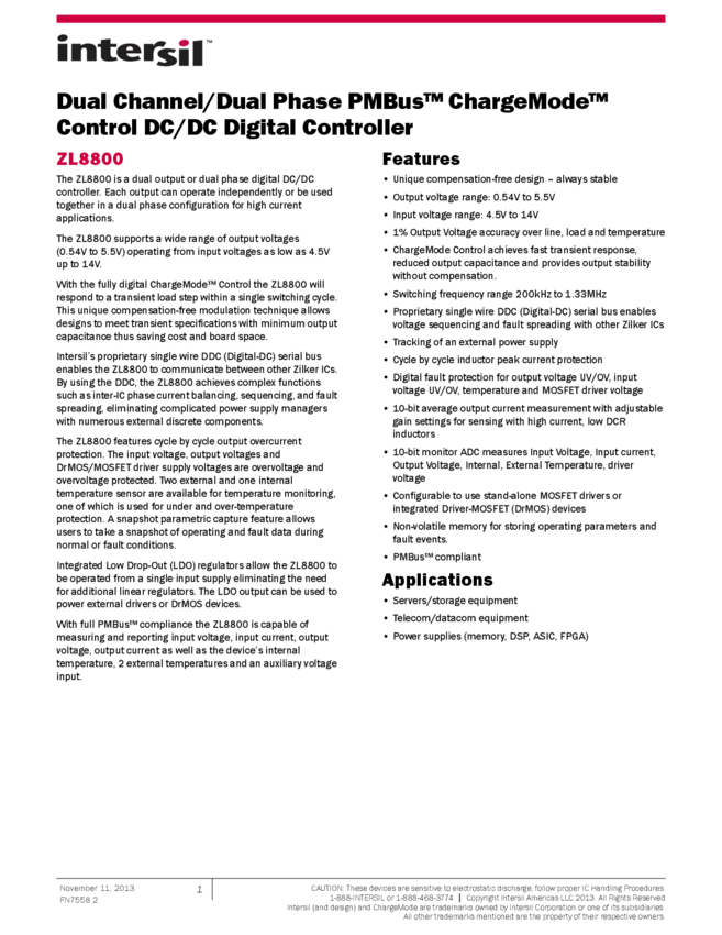 Dual Channel/Dual Phase PMBus ChargeMode Control DC/DC Digital Controller