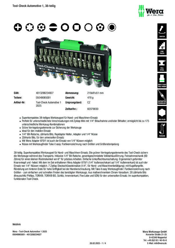 Bity Wera Tool-Check Automotive 1 2025 05049065001 1 szt.
