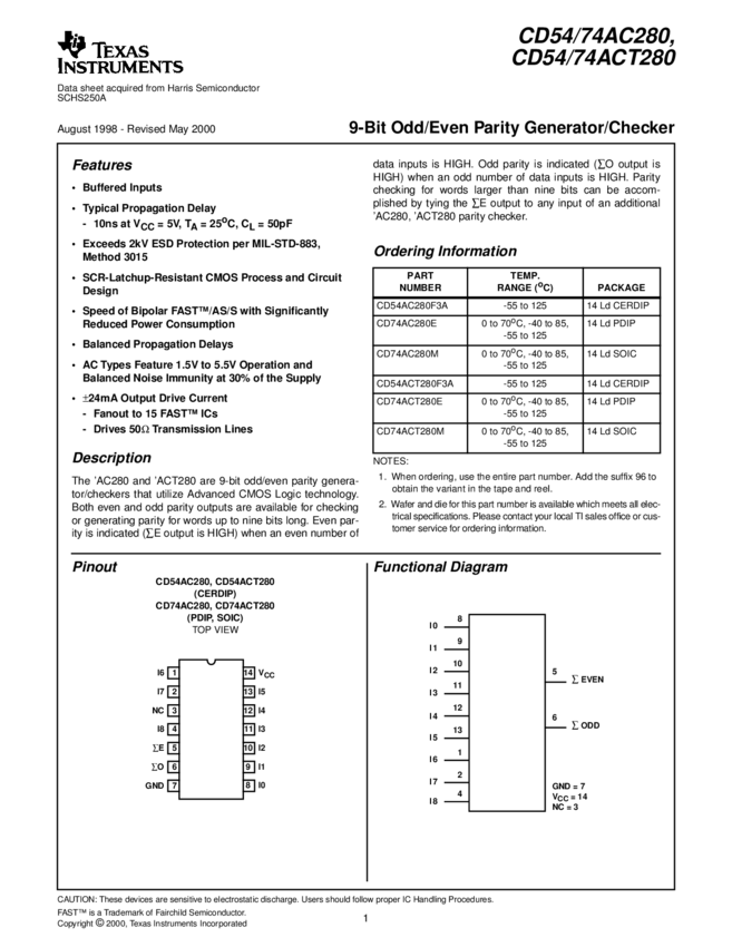 Parity Generator/Checker 9-Bit 14-Pin PDIP Tube