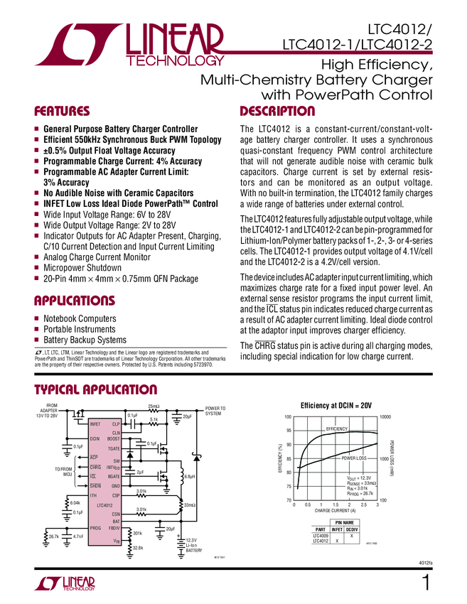 High Efficiency, Multi-Chemistry Battery Charger with PowerPath Control