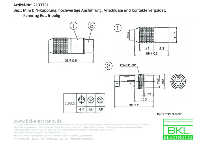 BKL Electronic 0212009 Złącze męskie DIN miniaturowe złącze, proste Ilość styków: 6 chrom 1 szt.