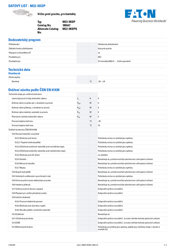 Nasadka chroniąca przed kurzem Eaton M22-XKDP 1 szt.