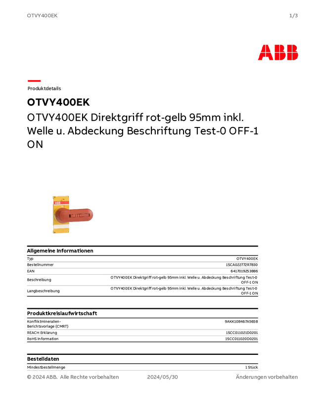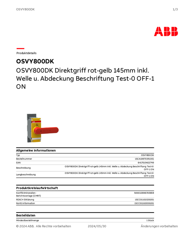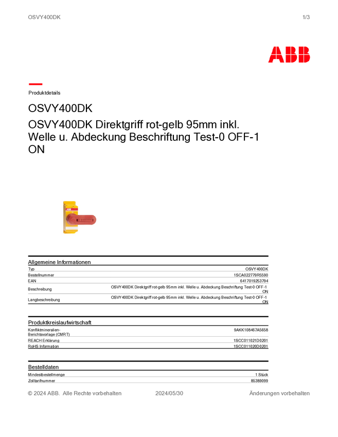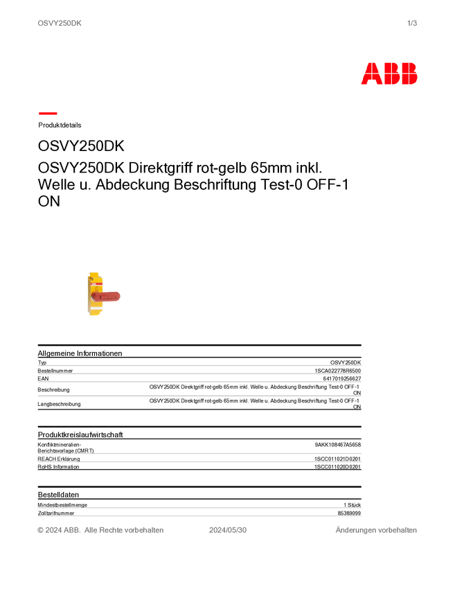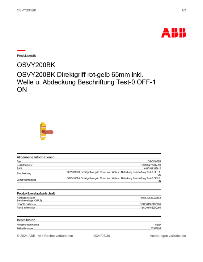 ABB 1SCA022778R6500 Bezpośredni chwyt 1 szt.