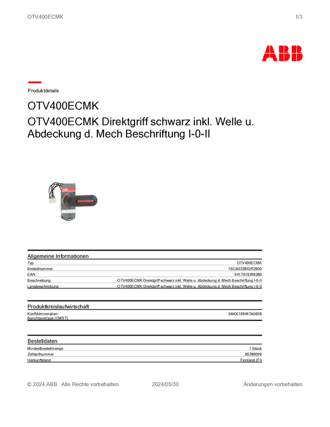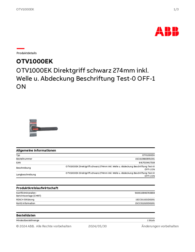 ABB 1SCA107797R1001 Bezpośredni chwyt 1 szt.