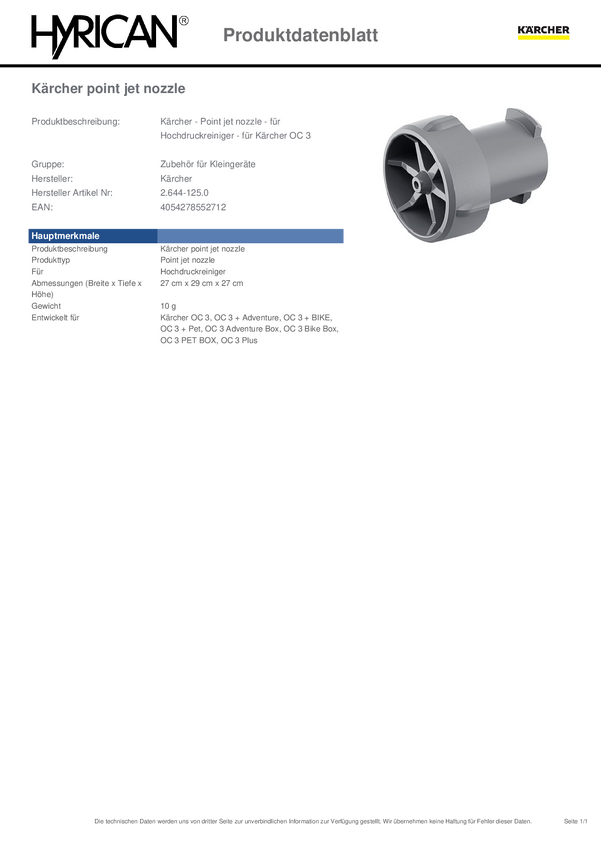 Kärcher Home & Garden Kärcher Dysza punktowa 2.644-125.0 Pasuje do marki (myjki ciśnieniowej) Kärcher 1 szt.