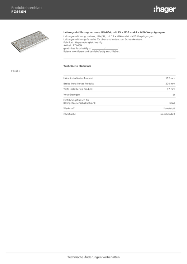 Hager FZ466N Wejście kablowe tworzywo sztuczne 1 szt.