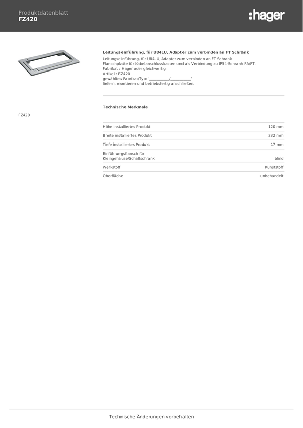 Hager FZ420 Wejście kablowe tworzywo sztuczne 1 szt.