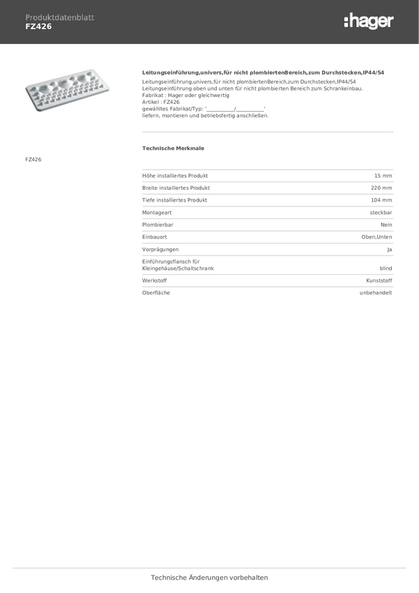 Hager FZ426 Wejście kablowe tworzywo sztuczne 1 szt.