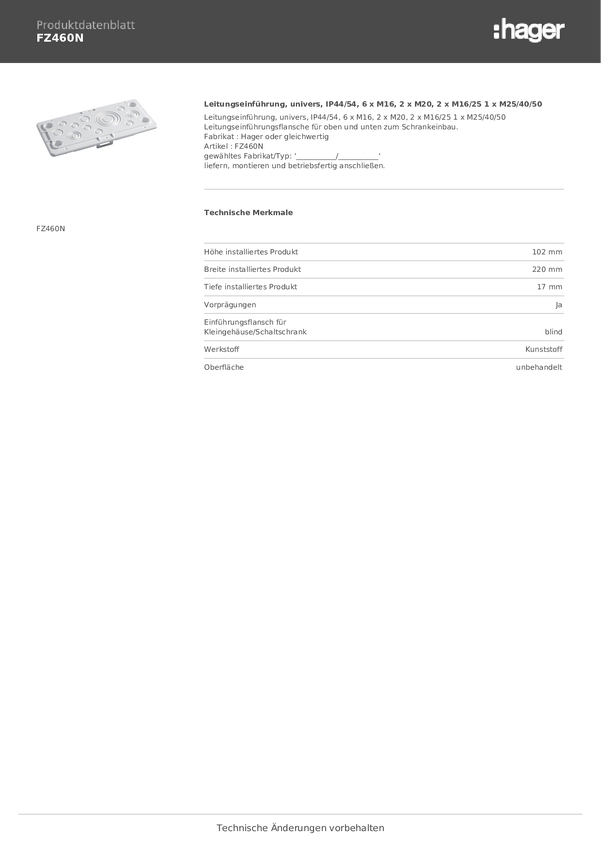 Hager FZ460N Wejście kablowe tworzywo sztuczne 1 szt.