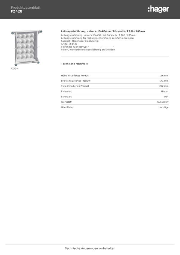 Hager FZ428 Wejście kablowe tworzywo sztuczne 1 szt.