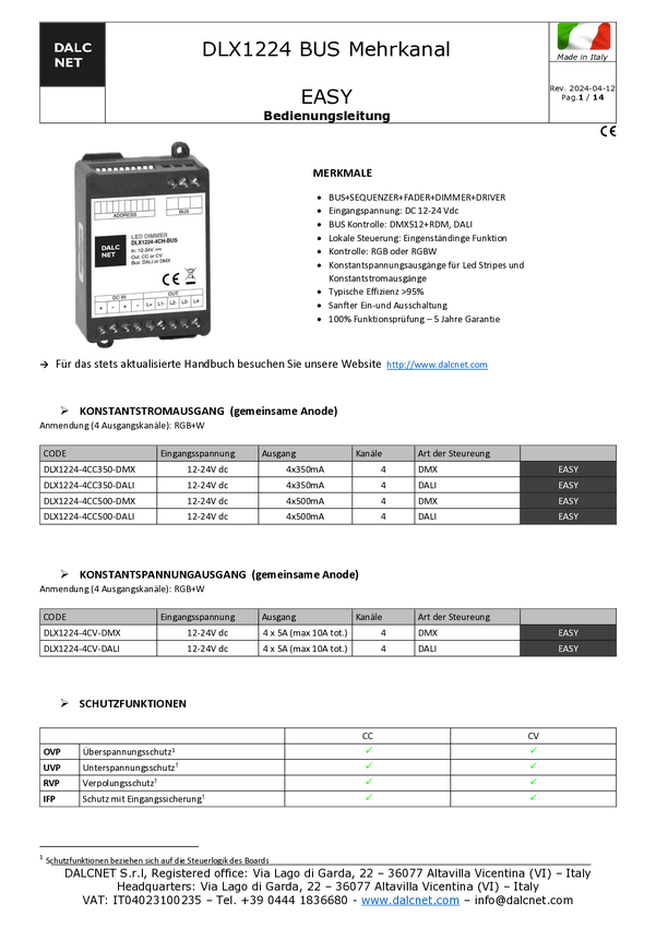 Ściemniacz Dalcnet DLX1224-4CV-DALI 4-kanałowy