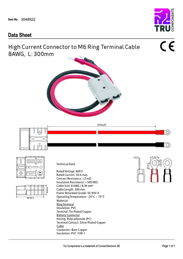Złącze akumulatora wysokoprądowego na zacisku pierścieniowym M6 TC-12195688 czarny, czerwony TRU COMPONENTS Zawartość: 1