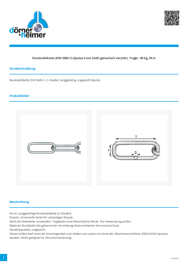 łańcuch pierścieniowy srebrny stal cynkowany galwanicznie dörner + helmer 171888 30 m