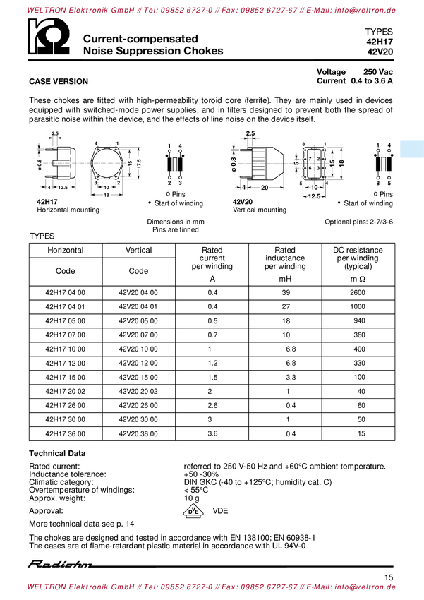 Dławik z rdzeniem pierścieniowym, pionowe radialny THD Wymiary siatki 10 mm 2.7 mH Radiohm 42V202500 1 szt.