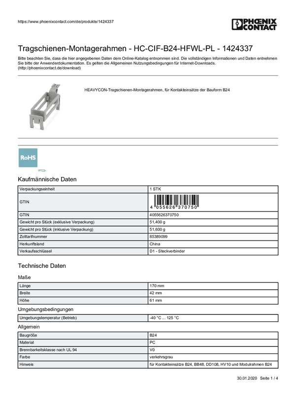 Phoenix Contact HC-CIF-B24-HFWL-PL 1424337 Złącze przemysłowe Zawartość: 1 szt.