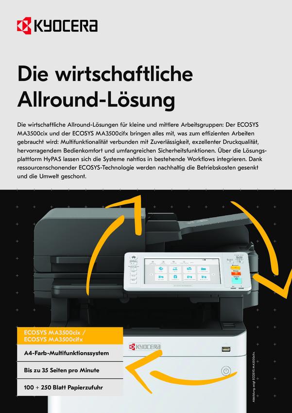 Kyocera ECOSYS MA 3500 cifx Plus Drukarka wielofunkcyjna laser druk kolorowy A4 drukowanie, skanowanie, kopiowanie, fax