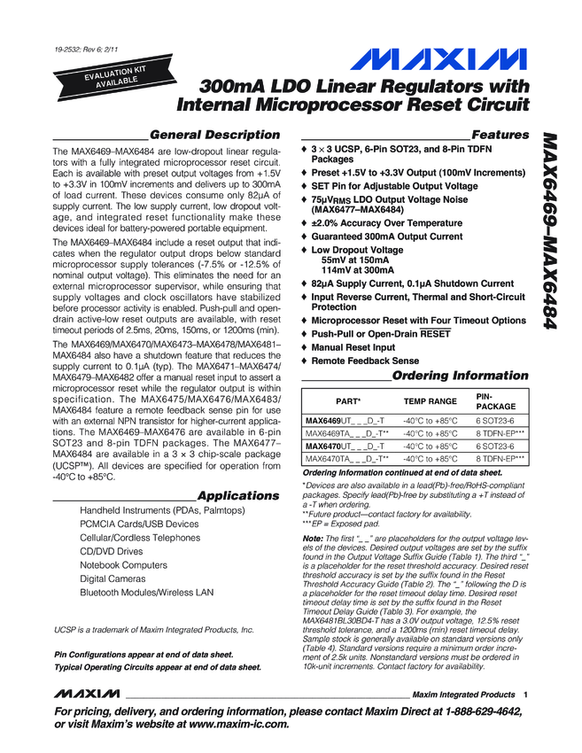 MAX6469, MAX6470, MAX6471, MAX6472, MAX6473, MAX6474, MAX6475, MAX6476, MAX6477, MAX6478, MAX6479, MAX6480, MAX6481, MAX6482, MAX6483, MAX6484 300mA LDO Linear Regulators with Internal Microprocessor Reset Circuit
