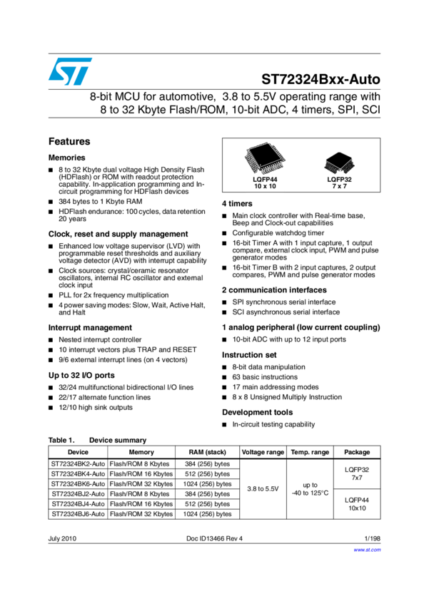 MCU 8-Bit ST7 CISC 60KB Flash 5V 32 LQFP Tray