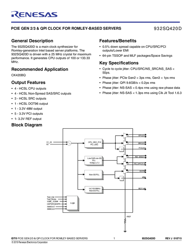 Low-Power CK420BQ Derivative for PCIe Common Clock Architectures