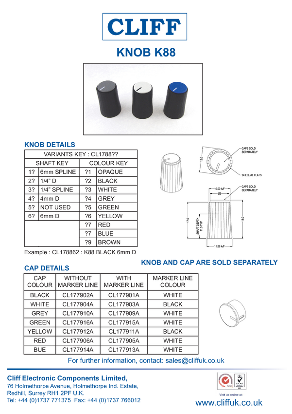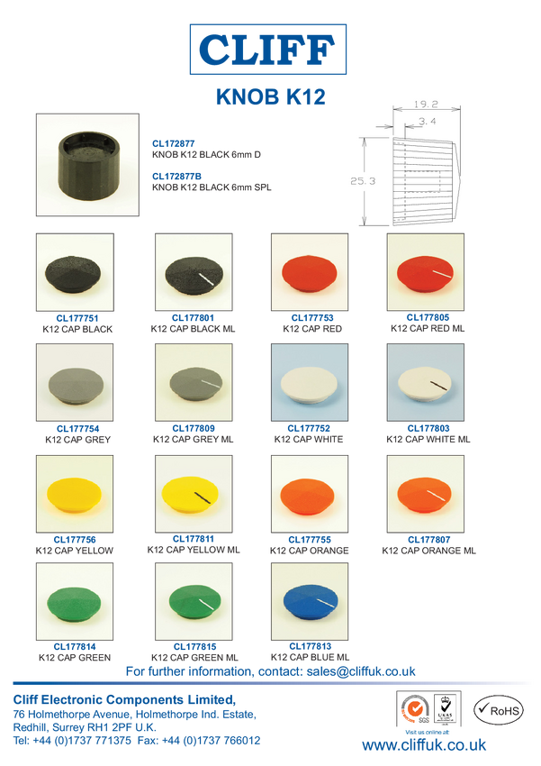 Cliff CL178812 CL178812 Pokrętło czarny (Ø x W) 12 mm x 17 mm 1 szt.