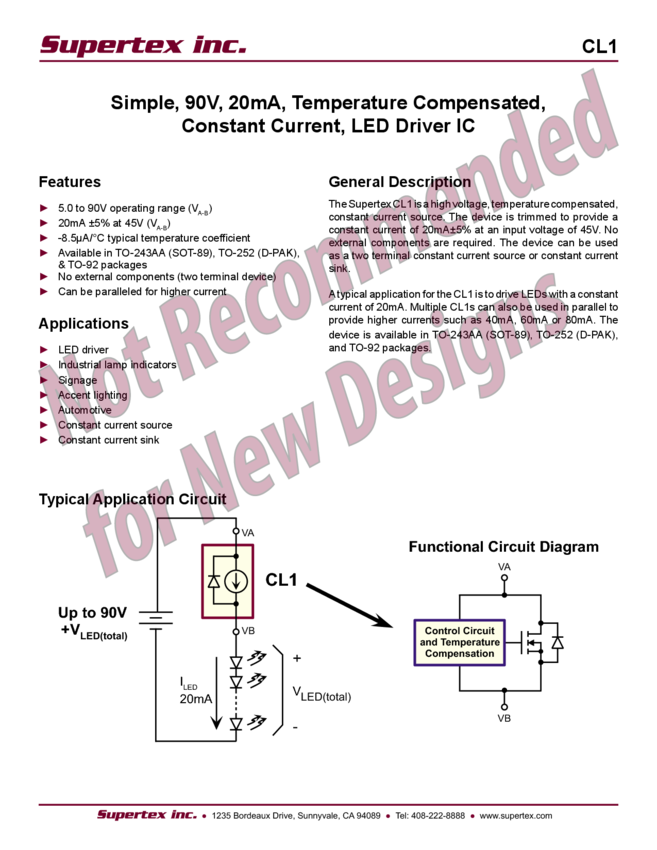 CL1  - Simple, 90V, 20mA, Temp. Compensated, Constant Current, LED Driver IC (09/24/2009)