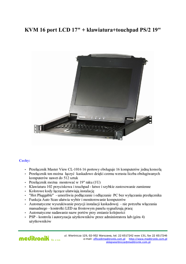 Wysuwana konsola KVM LCD Slideaway™- ATEN CL1016