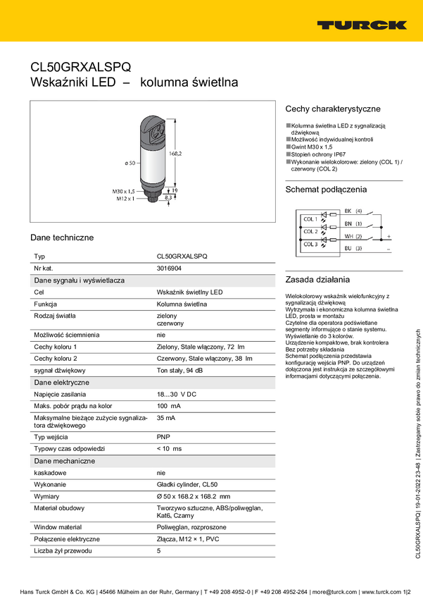 Sygnalizator łączony Turck CL50GRYAN