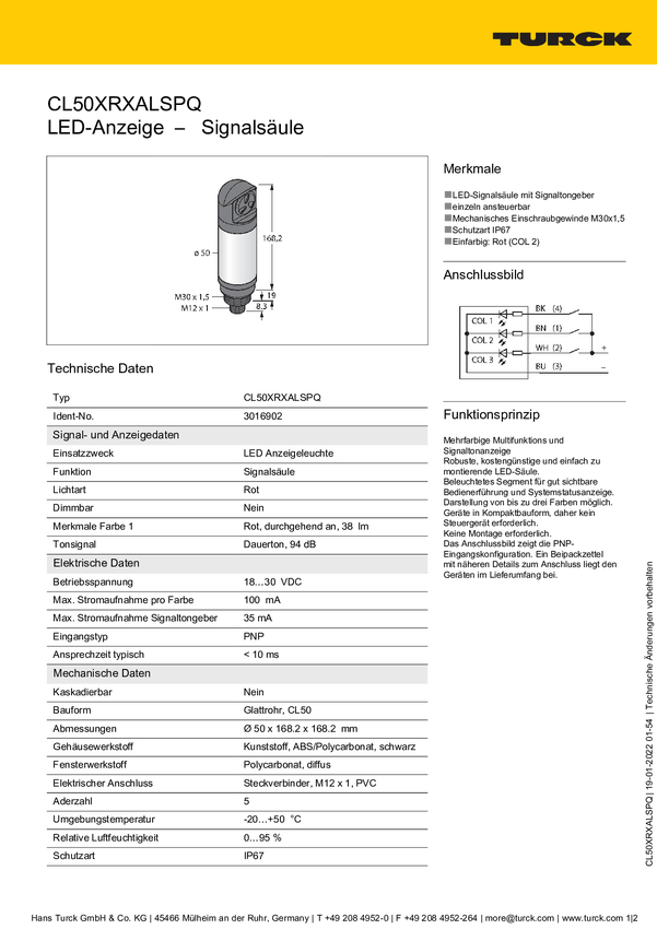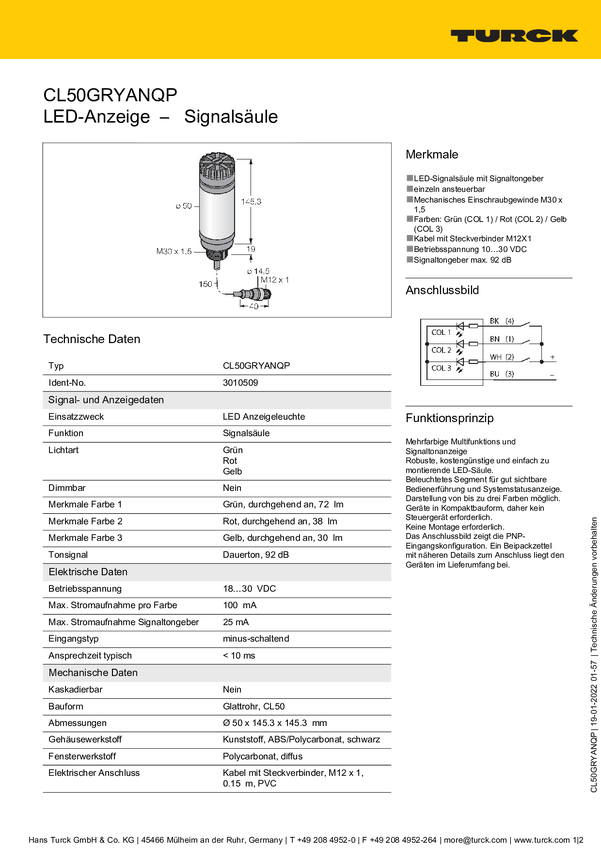Kolumna sygnalizacyjna Turck CL50XRXNQ 3010462 1 szt.