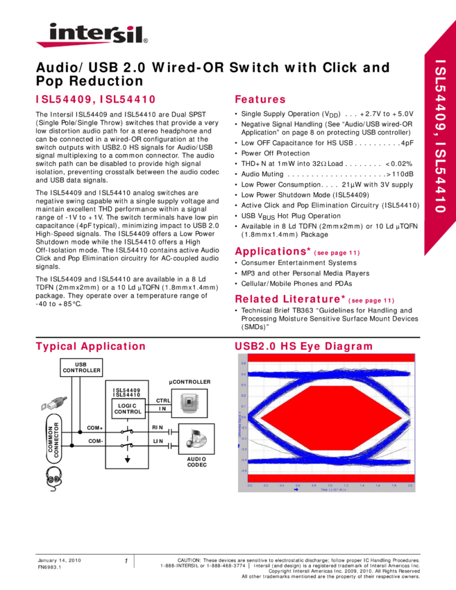 Audio/USB 2.0 Wired-OR Switch with Click and Pop Reduction