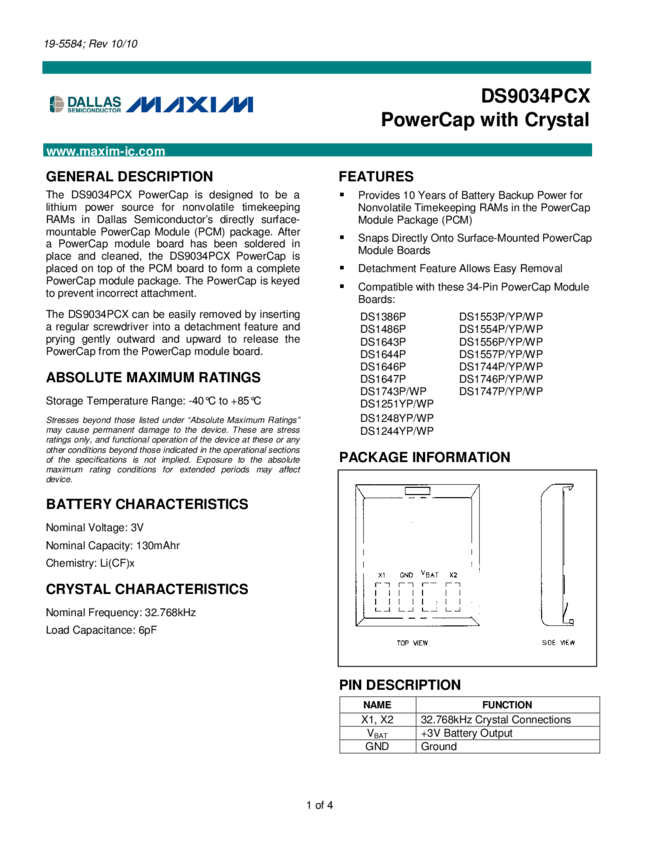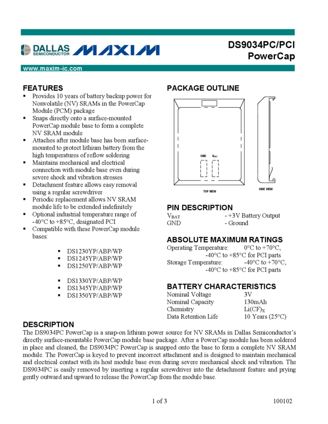 DS9034PCI Clip-On Battery Cap for PowerCap Devices