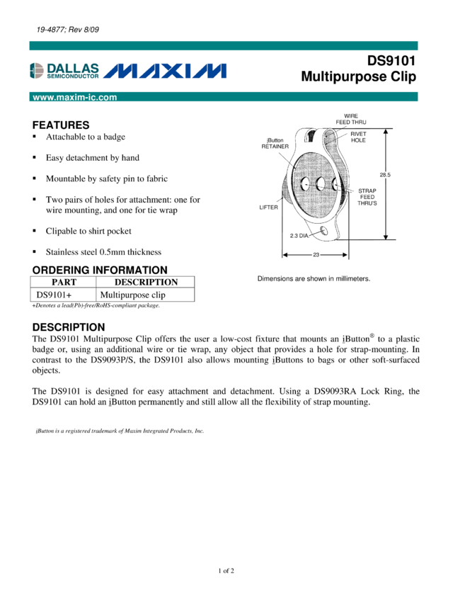 DS9094-SM5 Circuit Board Clip, Surface Mount