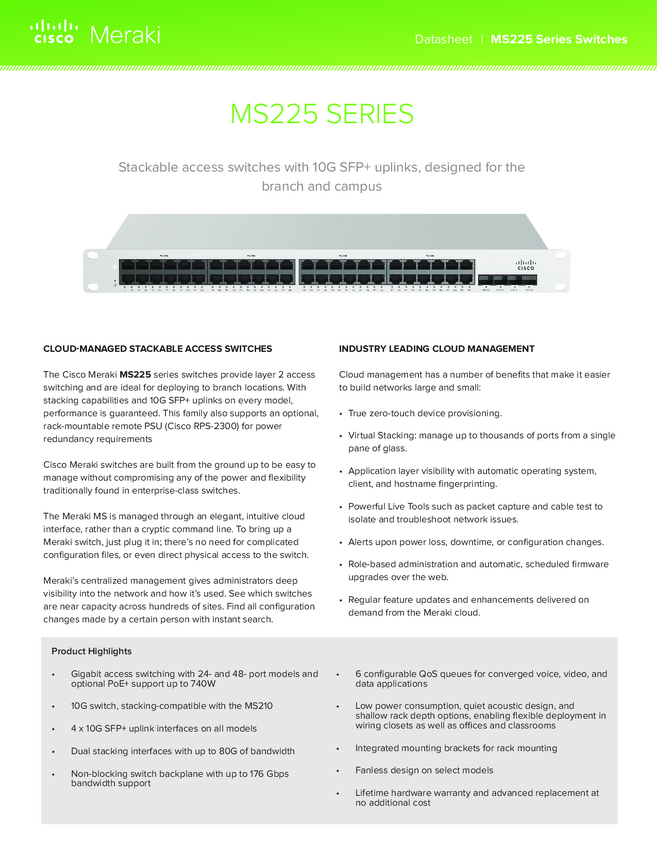 Przełącznik Cisco Cloud Managed MS225-48FP - zarządzany - 48 x 10/100/1000 PoE ++ 4 - przełącznik - 1 Gbps