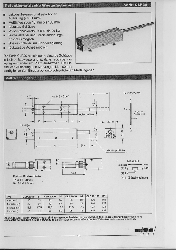 Potencjometr przewodzący plastik; Tol. 10%; lin 0,3% Wymiary:szer 20mm wys 20mm; dł. 85mm + piny lub złącze; długość z ośką 85+25; 85+75 mm ; rozstaw śrub 4x m3 - 12mm x 50 mm 3 piny + 1 pin Center tap; niepodłączony; ośka 6,00 mm bez sprężyny powrotnej; moc 075W; trwałość 10 mil.cykli; IP40